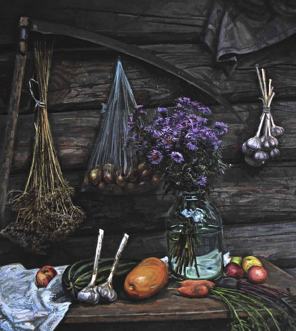 Сельский натюрморт. Холст. Масло. 90х80 2013г.